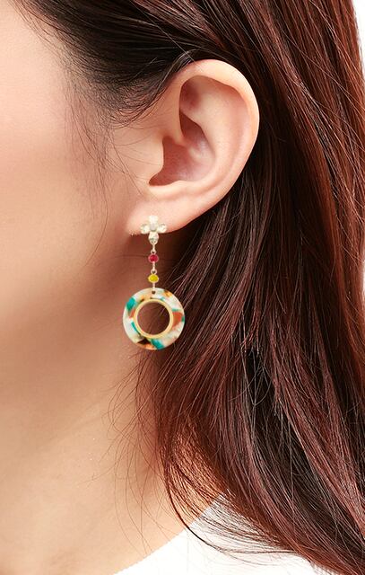 ☆カラフルなべっ甲リングとガラスビーズが夏にピッタリの一品です