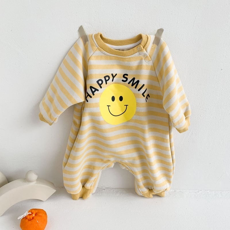 ・ボーダー柄で、中心に可愛いスマイル顔が付いています。