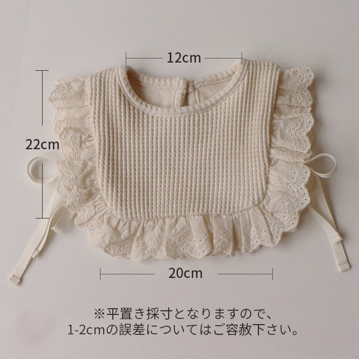 ・スタイのまわりにはフリフリのレースが付いていて可愛らしいデザインとなっています。