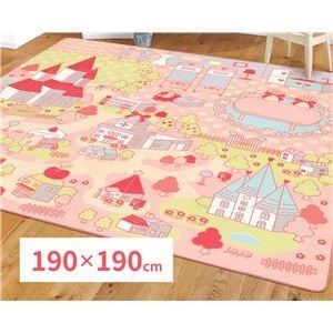 プレイマット 約190×190cm 洗える 防滑 ホットカーペット オールシーズン可 キッズラグ プリンセスタウン 2 リビング 子供部屋